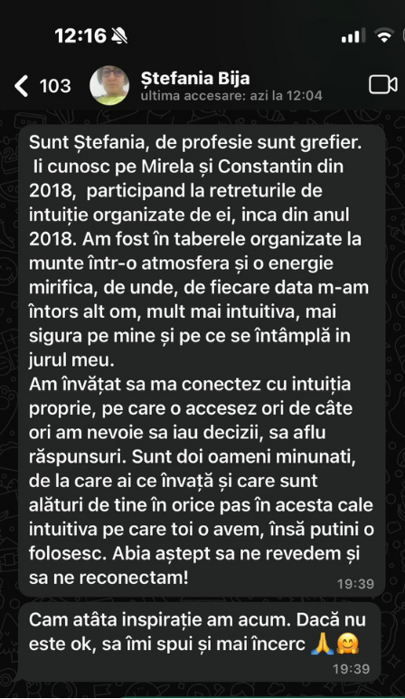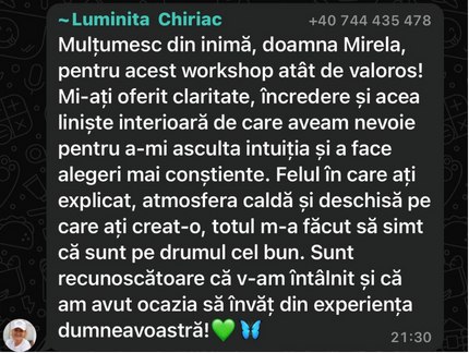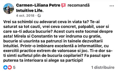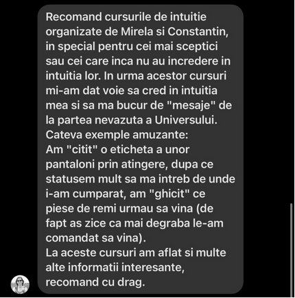 Cei care au participat la cursurile noastre au învățat să își acceseze această putere interioară și să transforme ezitarea în siguranță, confuzia în claritate și frica în acțiune inspirată. Au descoperit că intuiția nu doar că există, dar poate fi antrenată și rafinată pentru a deveni cel mai de încredere ghid în momentele de decizie și schimbare.